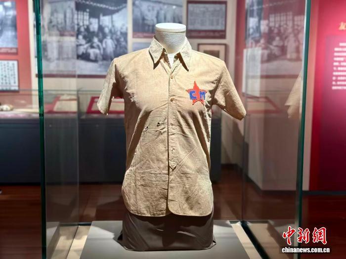抗日战争时期新四军六师十八旅五十二团二营机炮连指导员姚永钦穿过的球衣。中新网记者 王笈 摄