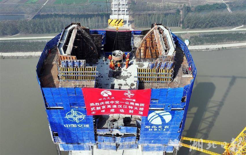 美林资管 武荆宜高速汉江特大桥主塔顺利封顶